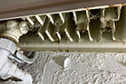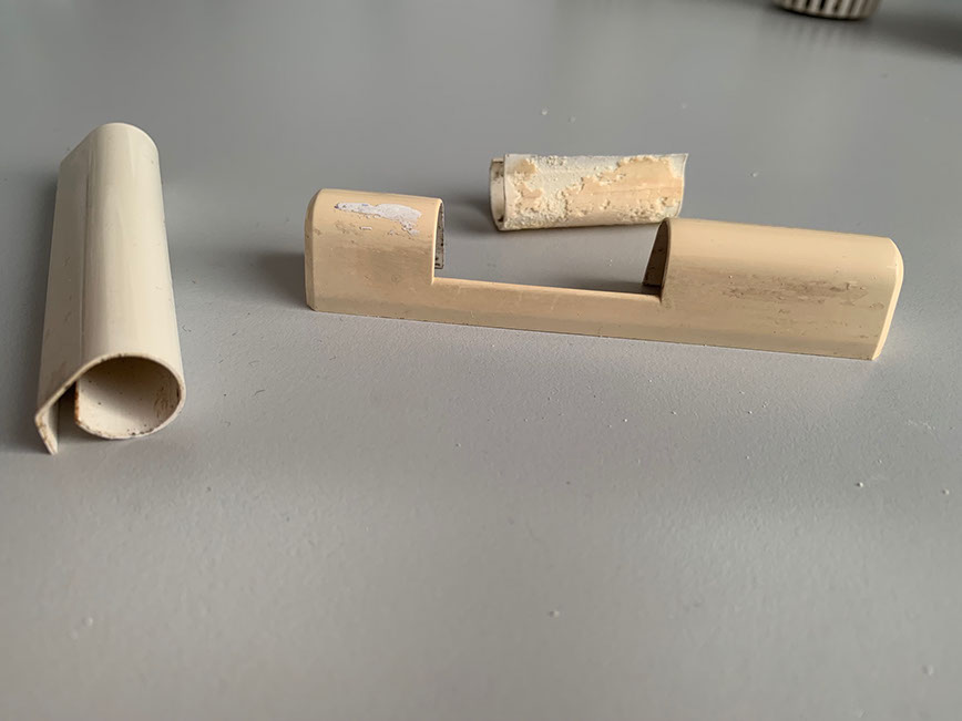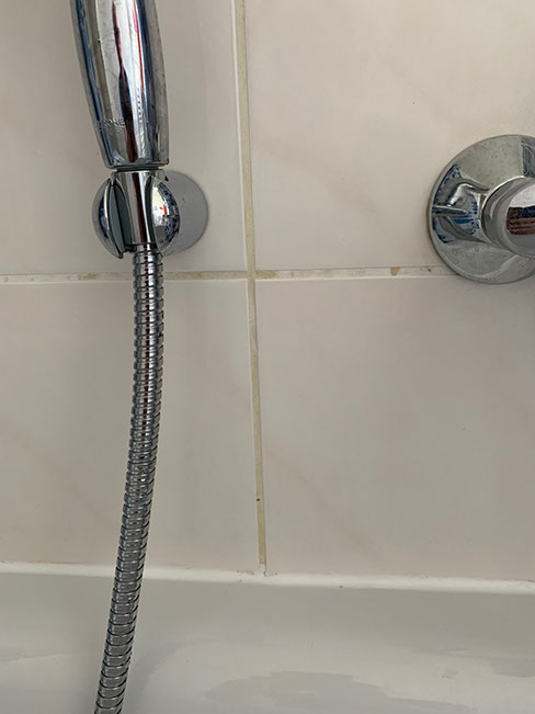 Das Wissen um die Vormieter und der Zustand des Bades ließ die einst euphorische Stimmung verblassen. Wir beauftragten auf eigene Rechnung eine Putzfirma die das Bad und alle Fensterrahmen intensiv säuberten. Die Fliesenfugen im Bad hatten jetzt den Anschein, als waren sie mal weiß. Kurios, die Revisionsöffnung in den Fliesen für den Anschluss der neuen Badewanne hatten die Klempner mit beigefarbigem Silikon verschlossen. Wir kauften uns chemischen Fugenreiniger, hochwertige Fugenweiß Stifte und machten uns an die Arbeit. Jetzt sehen die Fugen der Wandfliesen wieder toll aus. Beim intensiven Reinigen der Bodenfugen kamen Risse und herausgebröckelnde Stellen zum Vorschein die vorher offensichtlich nur mit Dreck gefüllt waren. Ich wandte mich gleich an den Wohnungsverwalter mit der Bitte um Reparatur. Er selbst war im Urlaub, seine Vertretung reagierte prompt und schickte einen Mitarbeiter der Firma IGOR zur Mängelbeseitigung. Dabei wurden gleich noch einige anderen Mängel mit beseitigt (Korrektur der Schwelle an der WE-Tür die jetzt wieder Rauchdicht schließt. Auch das Loch in den Wandfliesen im Bad wurde mit einem PVC-Deckel verschlossen). Wir wechselten einige stark vergilbten Bauteile noch auf eigene Kosten aus (4 Heizungsthermostate, alle PVC-Abdeckungen der Fensterbänder sowie die seitlichen Fensterbankabdeckungen). Einige Fenstergriffe konnte ich aus unserer alten Wohnung austauschen. Die innenseitige Balkonverkleidung wurde und ebenfalls ungereinigt übergeben. Mit einer Leiter habe ich wagehalsig die gesamte Balkenkonstruktion selbst gereinigt. Zum Glück bin ich schwindelfrei.