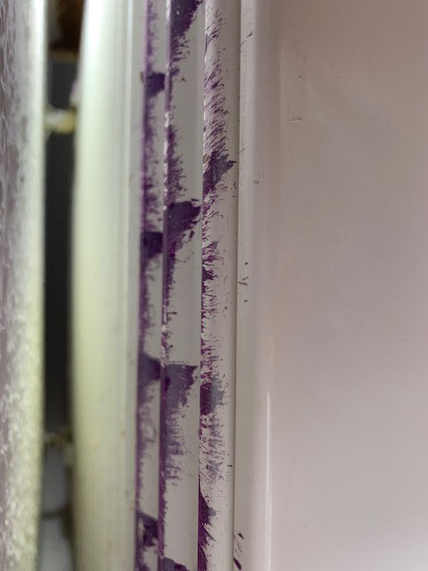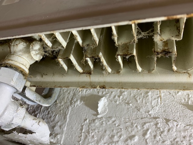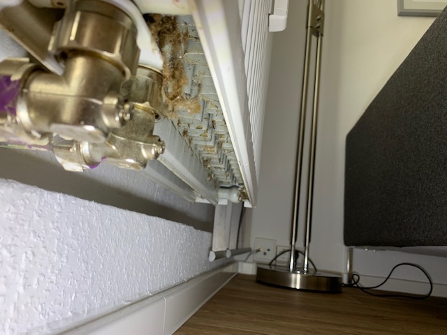 An einem kühlen Abend drehten wir die Heizung auf, wir freuten uns, dass selbst im August die Wärme angeboten wird. Das kannten wir von der alten Wohnung nicht. Irgendwie roch es plötzlich unangenehm. Der Mief kam aus dem Heizkörper. Als ich das Innenleben mit der Taschenlampe und die Unterseite mit einem Spiegel ansah, war ich fassungslos. Meine Ekelschwelle sank drastisch. Alle Heizkörper, besonders in Küche und Wohnzimmer, waren innenseitig verdreckt. Auch die Raufasertapete hinter den Heizkörpern löste zum Teil und der Anstrich war unsauber ausgeführt. Die Rückseite des Wohnzimmerheizkörpers ist mit lila Farbe beschmiert Daraufhin dokumentierte ich diese Mängel und schrieb meine Enttäuschung über den Zustand der uns übergebenen Wohnung auf und sendete eine E-Mail an den Verwalter. Eine Antwort kam erst nach einer erneuten E-Mail, inzwischen schliff eine nagelneu Zimmertür auf dem neuen PVC-Belag. Es wurde mitgeteilt, dass sich ein Mitarbeiter der Fa. Megaron bei mir melden würde, jedoch kein Statement über den Zustand der übergebenen Wohnung. Nach zwei Wochen meldete sich immer noch keiner bei mir. Um Schaden am Bodenbelag abzuwenden schrieb ich wieder eine E-Mail diesmal an den Technik Verantwortlichen. Bingo, nach 2 Stunden rief mich ein Klempner im Auftrag der Fa. Megaron an und vereinbarte einen Termin zur Mängelbeseitigung. Nach mehr als 2 Wochen kam auch ein E-Mail vom Verwalter an. Er meint, dass eine Wohnung mit optischen Mängeln bei einer Neuvermietung nutzbar ist. Klar, eine untapezierte Wohnung ist auch nutzbar. Wo ist die Grenze des Zumutbaren, wann fühlt man sich wohl?