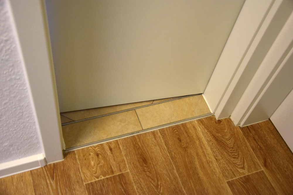 Der Techniker bat mich an den Vorstand zu schreiben, das tat ich dann auch. Ein Mitarbeiter meinte, die neue Türzarge ist auf die alten Fliesen gesetzt worden, damit wäre auch der Zargen Ausbau notwendig und somit unverhältnismäßig.Mit einem Foto bewies ich ihm das Gegenteil. Zumindest wurde mir jetzt die Lieferung eines Belagstreifens in Fluroptik zu gesagt.